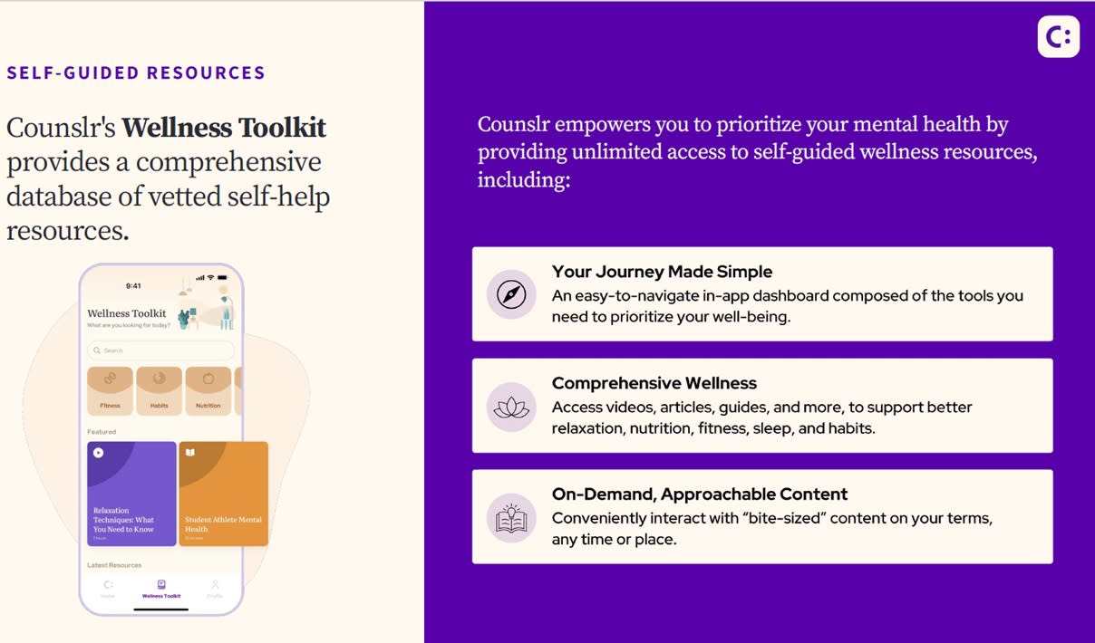 24/7/365 Mental Health Support from Licensed Counselors via mobile app